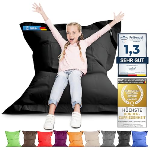 Lazy Bag Original inomhus och utomhus Beanbag XL 250 liter Giant Beanbag Junior Cushion Armchair för barn och vuxna 160x120 (Svart)
