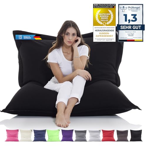 Original LAZY BAG Inomhus och utomhus Beanbag XXL 400L Giant Beanbag Sittdyna Fåtölj för barn och vuxna 180x140cm (Nylon, Svart)