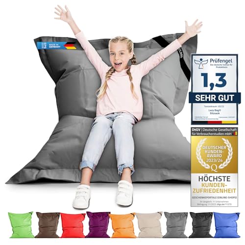 Lazy Bag Original inomhus och utomhus Beanbag XL 250 liter Giant Beanbag Junior Cushion Armchair för barn och vuxna 160x120 (Grått)