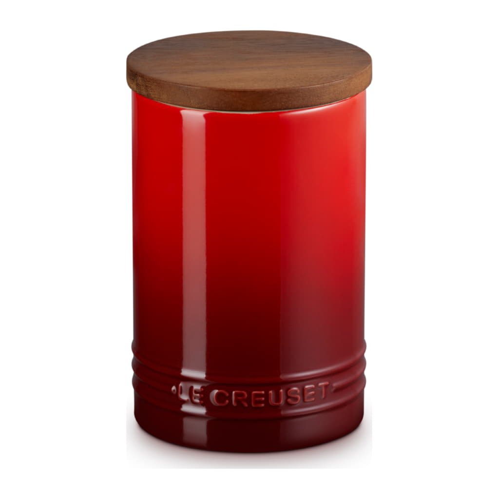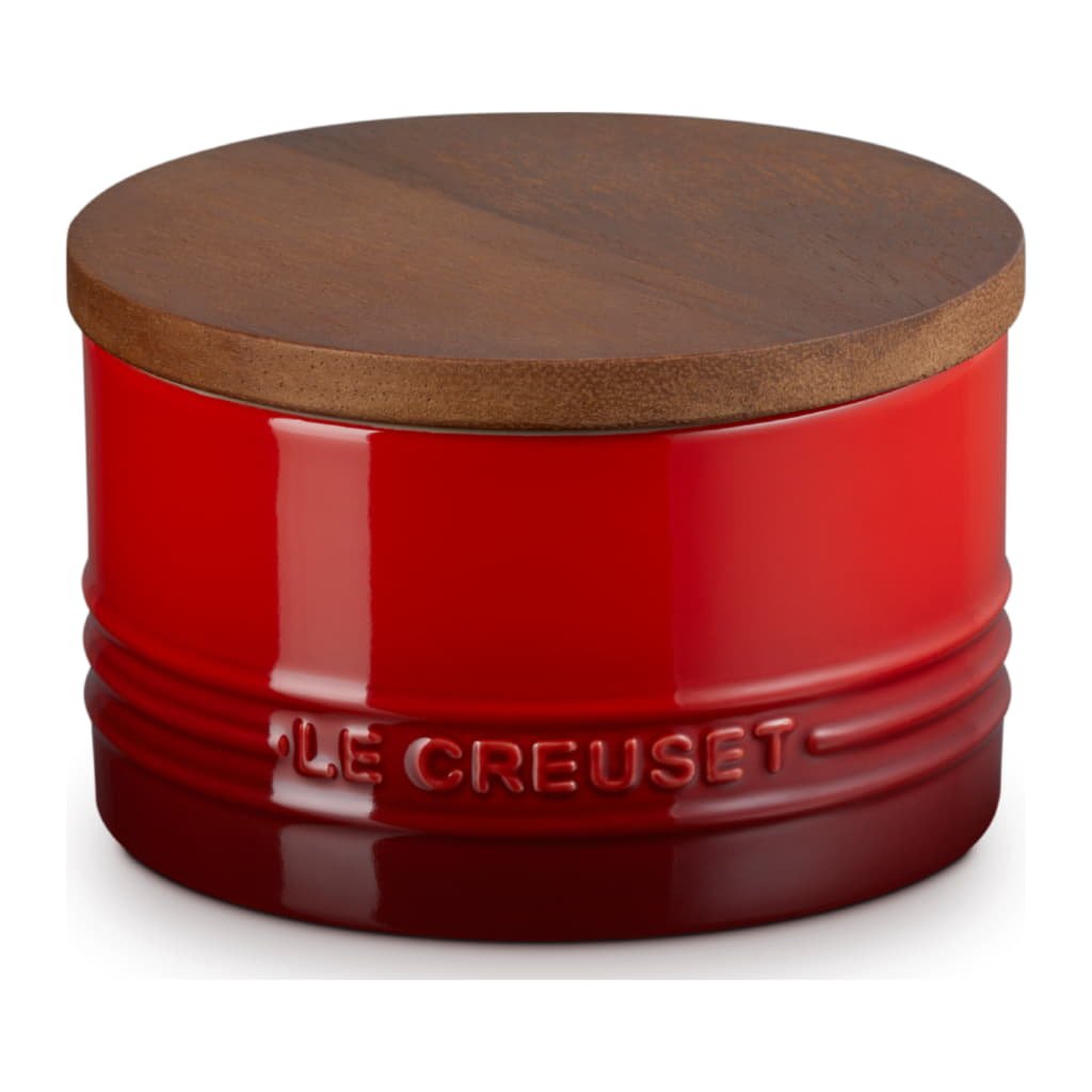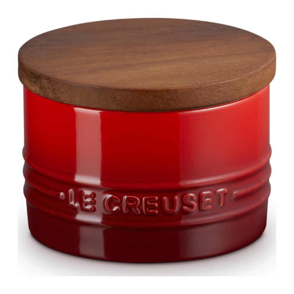 Le Creuset Stengods medelstor förvaringsburk med trälock, stengods, 540 ml, 10 cm, Cerise