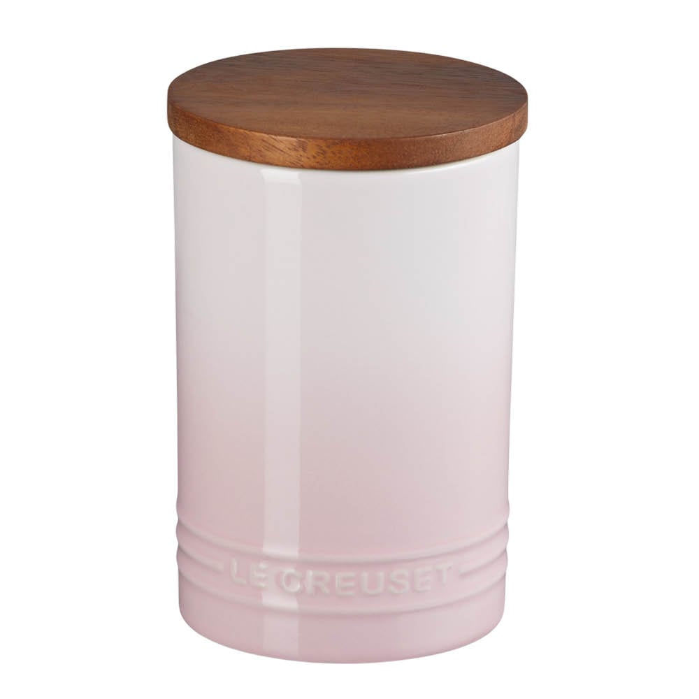 Le Creuset Stengods medelstor förvaringsburk med trälock, stengods, 540 ml, 10 cm, Shell Pink, 60825547770099