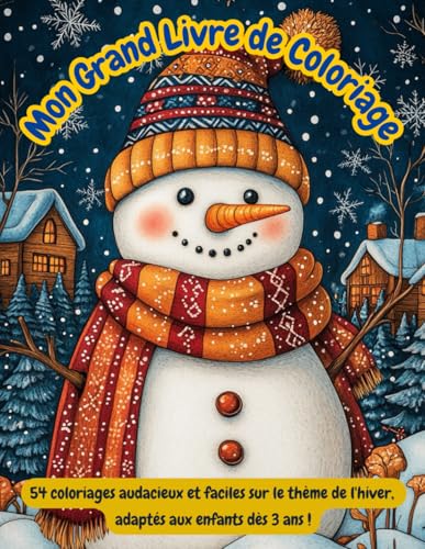 Mon Grand Livre de Coloriage: 54 coloriages audacieux et faciles sur le thème de l'hiver, adaptés aux enfants dès 3 ans !