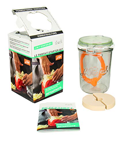 Le Parfait 44839 ml (inkl. gummiring, glas för fermentering/konservering, glasburk med recepthäftad)