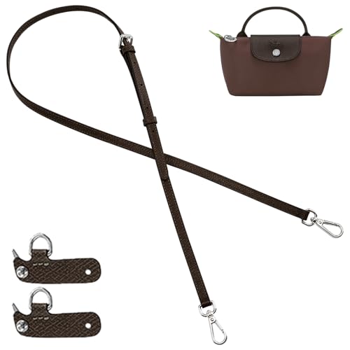 Byte av Läderremmar, Äkta Läder Axelrem med Stansfri Adapter Justerbar Ersättningsrem för Handväska Crossbody-Väska Handväska för Mini Le PLIAGE (Brun)