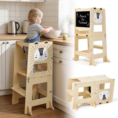 labebe Inlärningstorn för barn (92 x 38,5 x 42 cm), vikbart, Montessori Learning Tower, 2-i-1-lärotorn med meddelandetavlor, från 1 år