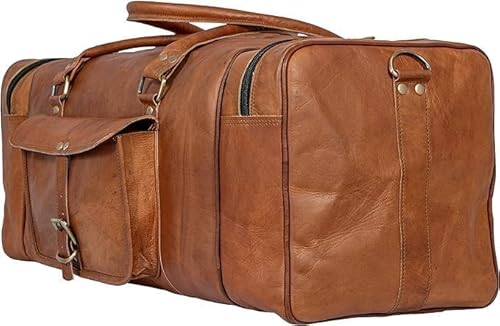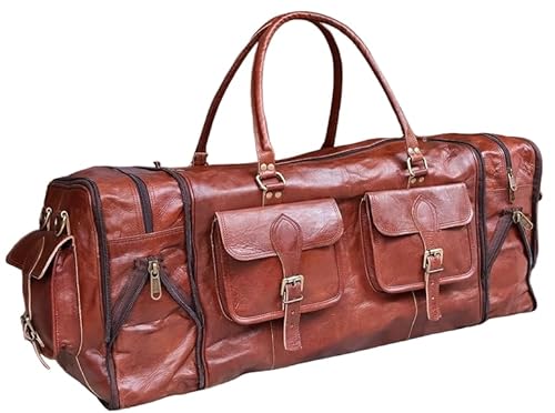 ALASKA EXPORTS Travel Holdall äkta läder duffelväska gym duffel weekendväskor | handbagage | övernattningshall | sportduffels – brun (71 cm x 25 cm x 30 cm), Brun, 28' INCH