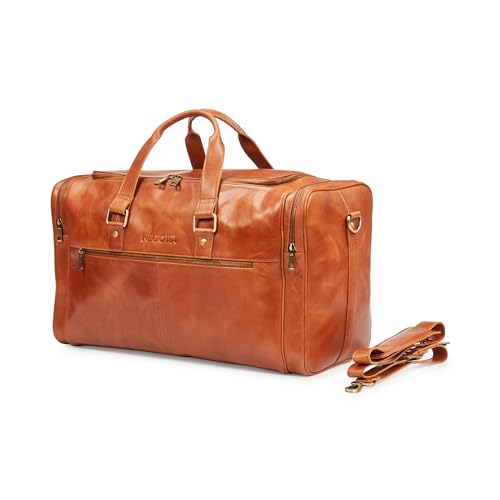 KomalC 24 tums duffelväskor i läder för män och kvinnor, fullnarvigt läder, resa övernattning, helg, läderväskor, sport, gym, duffel för män, Brun, Brun sliten solbränna