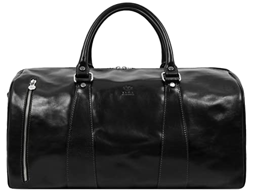 BACCINI Resväska Holdall Florian stor duffelväska äkta läder 52 cm weekender duffel läderväska kvinnor och män, Svart-48 cm, Unisex-Adults, Reseduffel