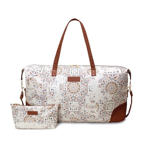 Jadyn B Luna Duffel - 54 cm - 37 L - Rese- eller sportväska inklusive toalettväska med dragkedja, Mosaik, Softside duffelväska med veganskt läder accenter