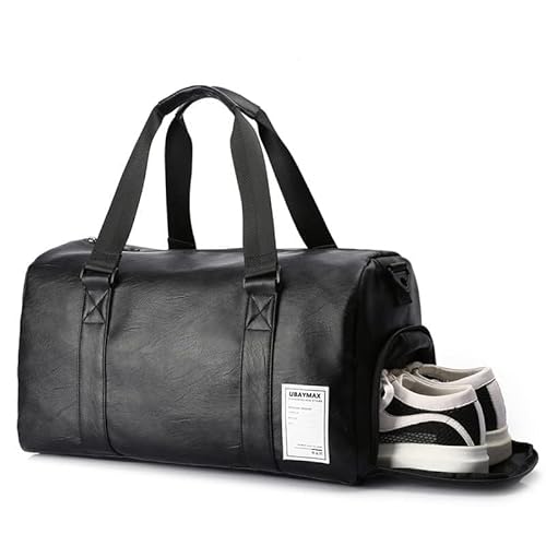 UBAYMAX Herr dam lädersport duffel gymväska med skor fack våt ficka, 37 L vattentätt läder helg resa övernattningsväska för kvinnor män kappsäck handbagage för simning dans basket, Svart (läder)