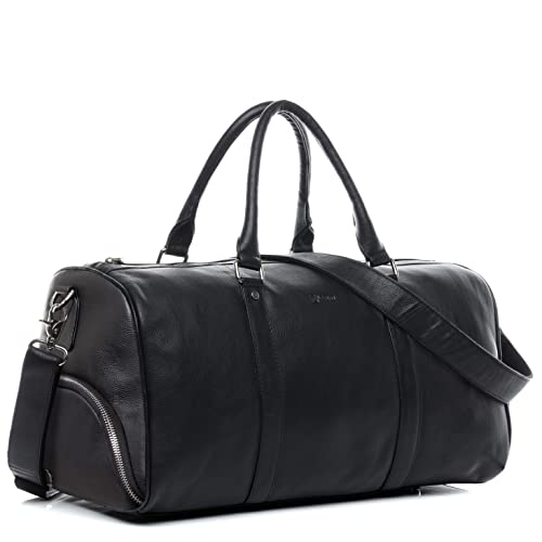 BAOSHA läder resa duffel helg väska handbagage sovsäck sportväska för män och kvinnor HB-21, svart, travel duffel