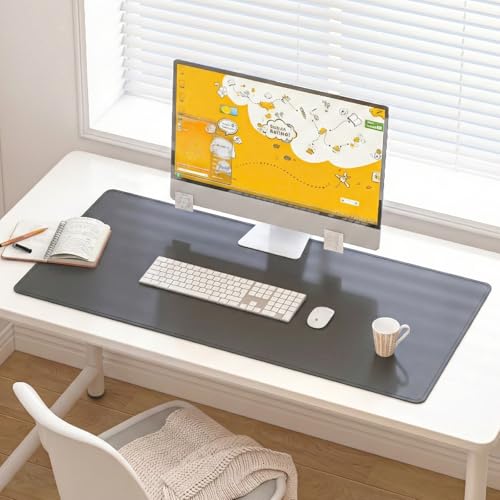 DOBAOJIA Skrivbordsmatta Stor, Utökad Musmatta, Mouse Pad XXL, Mouse Mat Extra Large, Skrivbordsblotter, Bärbar Datormatta, Skrivmatta, PU läder vattentät + mocka halkfri 90 x 43cm (Grå)