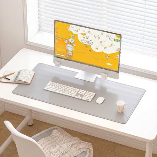 DAWNTREES Skrivbordsunderlägg, kontorsbordsunderlägg av läder, halksäker, kontor, stor musmatta, laptop skrivunderlägg, lämplig för kontor, hem och stationär användning (ljusgrå, 80 x 40 cm)