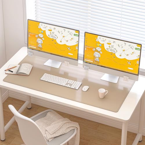 DAWNTREES Skrivbordsunderlägg, 100 x 50 cm, kontorsbordsmatta av läder, rutsäker, stor musmatta laptop skrivunderlägg, lämplig för kontor, hem och stationär användning (beige)