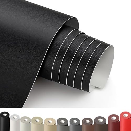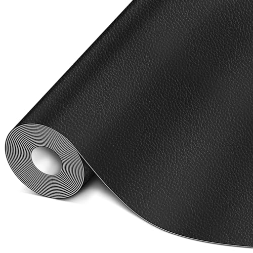 AiQInu konstläder självhäftande, 10 x 160 cm läderlapp självhäftande svart, konstläder reparationsset för soffa, möbler, väskor, jackor, bilsäten