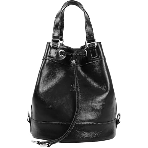 Time Resistance Läderhandväska för Kvinnor - Handgjord Hinkväska i Fullnarvigt Läder - Italiensk Läder Tote-väska - Axelväska för Kvinnor - Handväska för Arbete och Vardag (Svart)