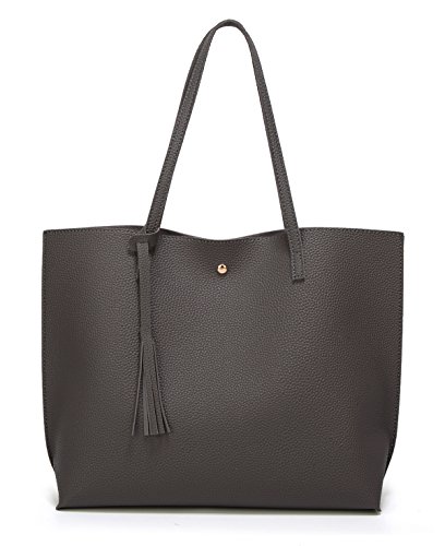 Dreubea Women's Soft Faux Leather Tote Shoulder Bag from, Big Capacity Tassel Handbag Dark Grey