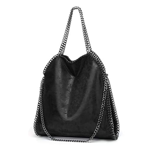 Kvinnors mjuka läder Tote Bag stor kapacitet axelväska med kedjeband svart Casual väska för damer