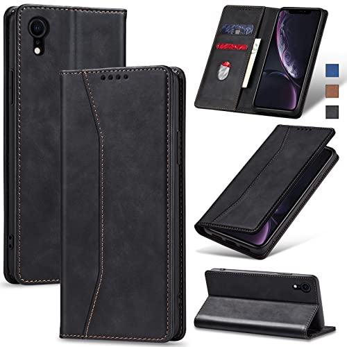 Cracedily Skal för iPhone XR Case, Läderfodral Plånbok Skal, [TPU-skal] [Kortplatser] [Kickstand] stöttåligt folio flipfodral Wallet Leather Cover för iPhone XR, Svart