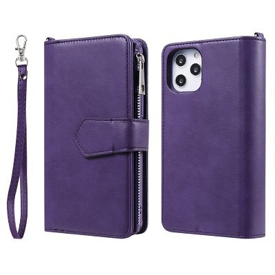 Zipper Magnet Leather Wallet iPhone 12 Pro Max Lila