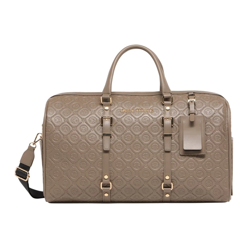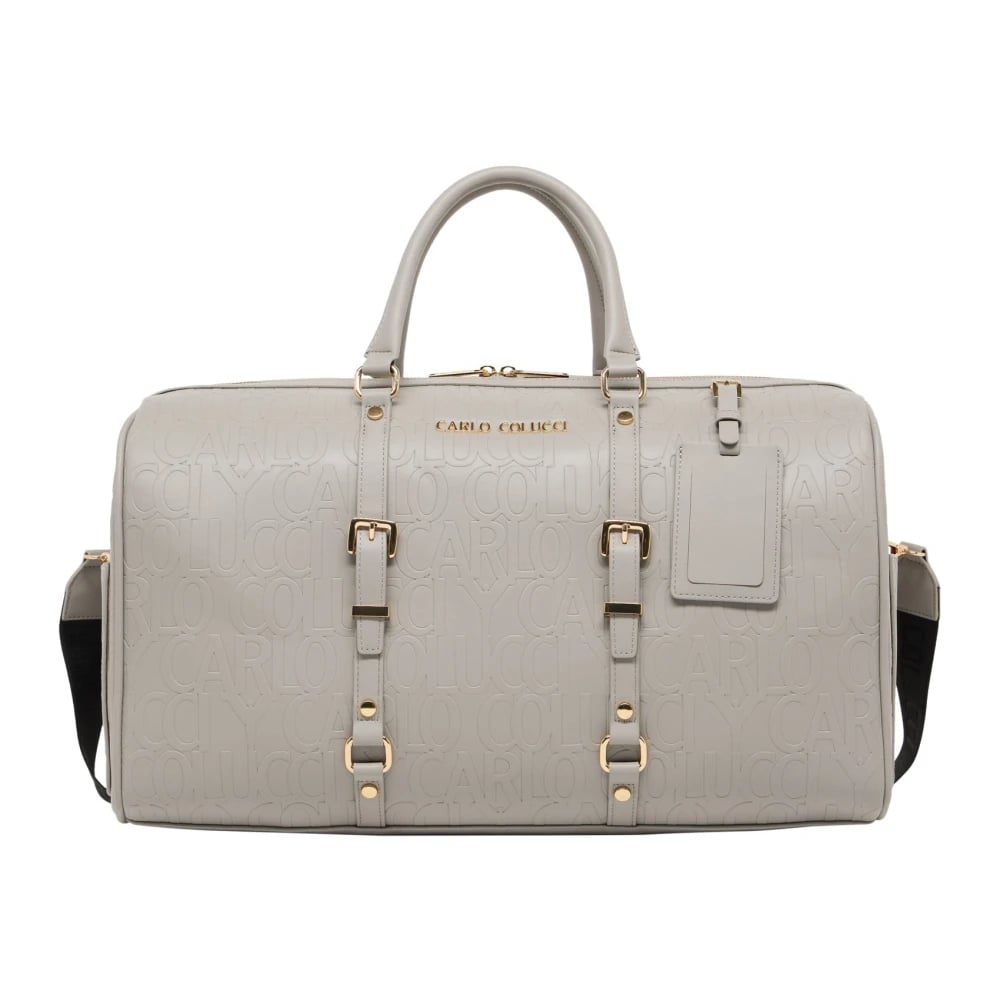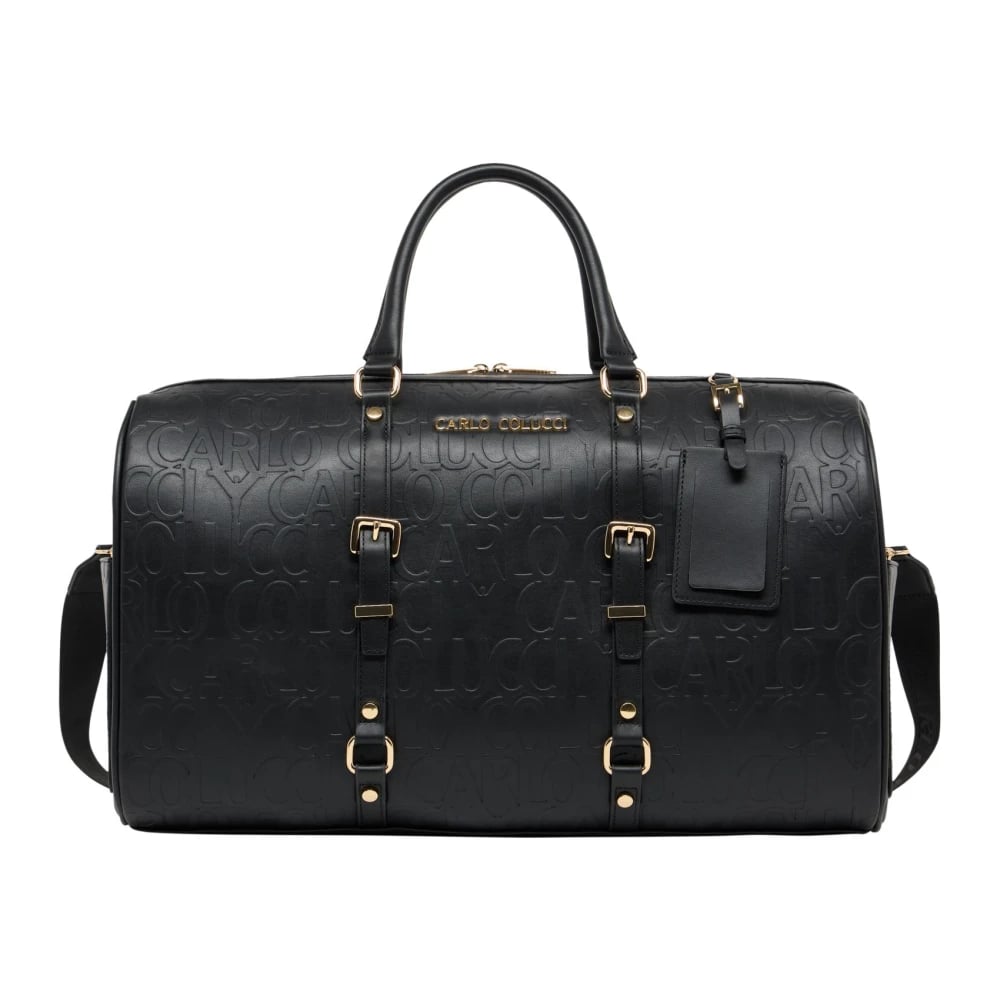 Carlo Colucci, Väskor , unisex, ONE Size, Läder, Stilren Weekender med Präglat Logotyp