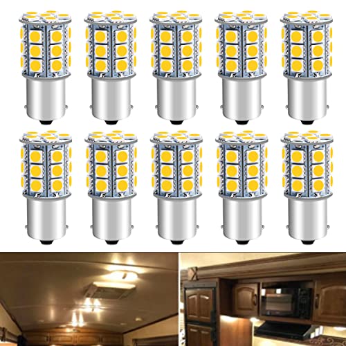 DEFVNSY 1156 LED RV glödlampa, 3000K varmvit 1003 BA15S 1141 7506 5050 27-SMD LED-ersättningslampor för 12 V husbil, husvagn, interiörlampor, backup-lampa (10 st)