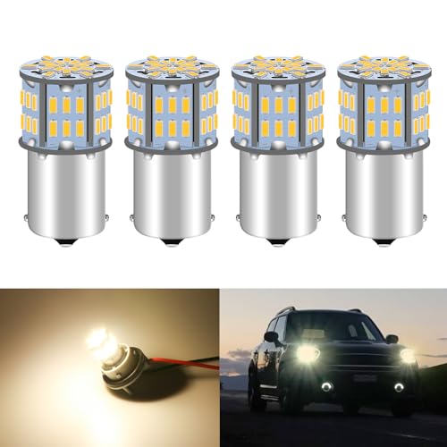 DEFVNSY - Förpackning med 4-1156 BA15S 3014 54-SMD Varmvit 3000K LED-lampor 12V Lampor för bil Blinkers Interiör RV Husbil Trailer Båt Backup Bakljus