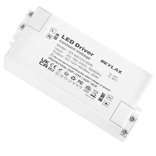 REYLAX LED Transformator 12V 60W 5A Drivrutin AC 220V till 12V DC Konstant Spänning Strömförsörjning LED Förare Adapter för LED Strip Ljus G4 MR11 MR16 Glödlampor