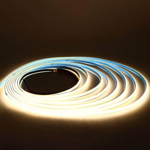 TOPAI COB 3 000 K LED-remsa smal 3 mm bred, LED-ljusremsa 12 V varmvit 5 m 384 LED/M CRI>93 självhäftande flexibla avskurna IP20 icke-vattentäta för kök sovrum gör-det-själv-belysning