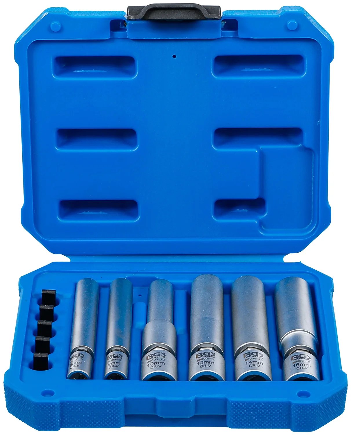 Gløde-og tændrør-top-sæt med led | 6,3 mm (1/4") / 10 mm (3/8") | 8 - 9 - 10 - 12 - 14 - 16 mm | 11 dele