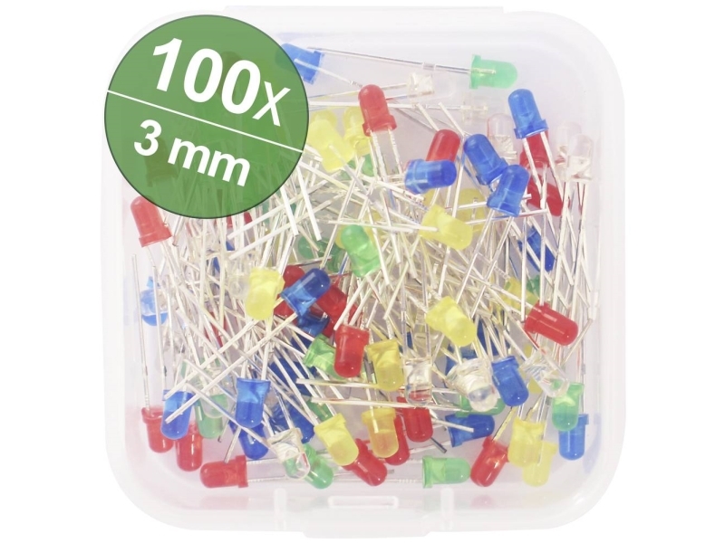 Barthelme 430312 LED-sortiment röd, blå, grön, gul, kall vit, varmvit rund 3 mm 100, 600 mcd, 1500