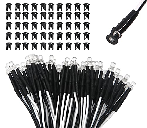 Lyeteung 50 Stycken 3mm 12V Förtrådda LED Dioder Ljus, Vit, 20cm Förtrådda LED Lysdioder + 50 Stycken 3mm Plast LED Hållare