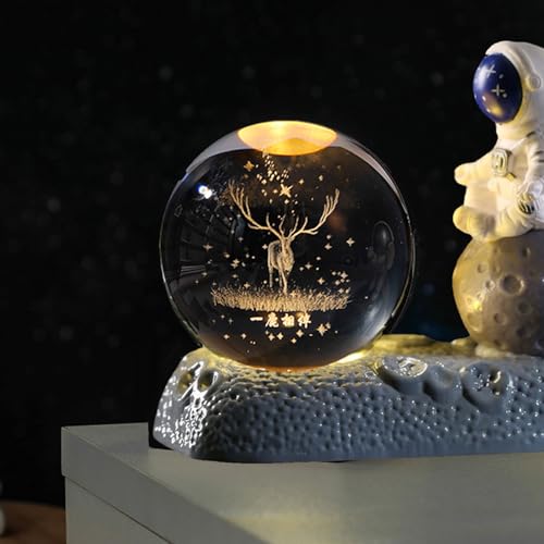 DRYFAL 3D-nattlampa i form av en kristallkula, glasboll med en älg för barn, nattlampa med träbas, fantasidekor, LED-galax, nattlampa med planet, present, sovrumsdekor