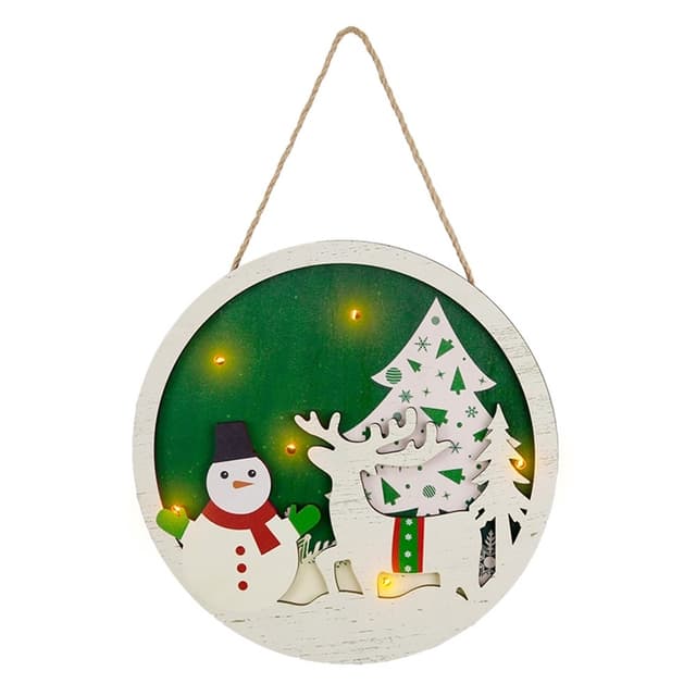 Jul Skylt Dekoration Dörr med LED-ljus - Snögubbe och älg