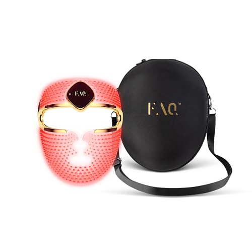 FAQ 202 LED-ansiktsmask med resväska – anti-aging vård med 8 ljusinställningar – 600 ljuspunkter för riktad behandling och ansiktsbehandling – lätt och hållbart resekit