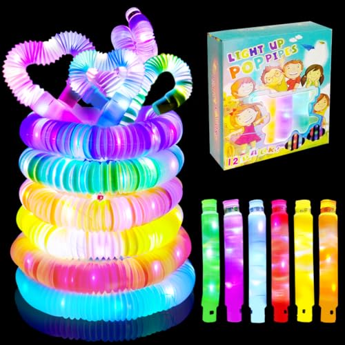 12 stycken pop-rör, fidget toys kinklampor, 2024 LED pop-rör, färgglada LED stretchrör, lysande armband festset present barn födelsedag karneval presenter nyår festival tillbehör
