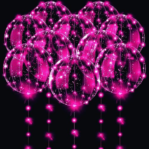 LED-ballonger 10-pack, 50 cm upplysta boboballonger, heliumstil, glödande bubbelballonger för jul bröllop födelsedag alla hjärtans dag halloween festtillbehör dekorationer (rosa ljus)