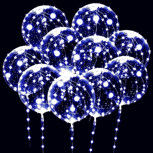 10-pack LED Bobo-ballonger, klara upplysta ballonger, heliumglöd bubbelballonger med ljusslingor för fest födelsedag bröllop quinceanera-dekorationer (kallvit)