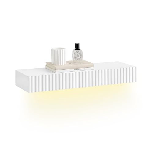 SoBuy vägghylla med låda och LED-rörelsesensor, väggmonterad hylla för sovrum, hall & vardagsrum, batteridriven, B60 × D20 × H8 cm, vit, FHK38-W