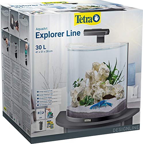 Tetra Explorer Line 30 L akvarium komplett set – design akvarium med böjd framruta, LED-belysning, teknik, foder och vårdprodukter, färg: svart