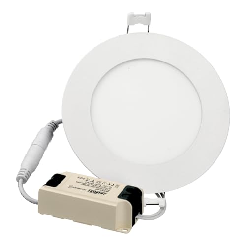 Jandei - Rund Extra-Flat Panel LED Downlight. Belysning 6W, 6000K, Kallvit. Badrum, Kök, Vardagsrum, Hall, Tak, Inbyggd. Energi sparande.