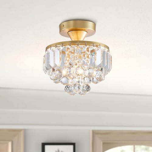 BESTIER Modern guld kristall halvvägs ljuskrona belysning LED taklampa lampa för matsal badrum sovrum vardagsrum diameter 23 höjd 26