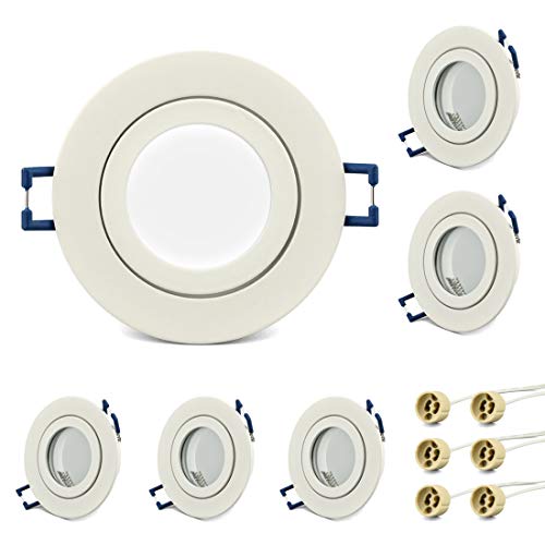 KYOTECH LED infälld taklampa monteringsram vattentät IP44 för våta badrum inkl. GU10-uttag, nedljusram för takstrålkastare MR16 GU10 och halogenlampa, infälld belysning 6-pack