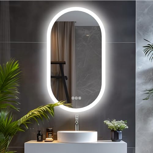 LUVODI Spegel ovalt badrum: 80 x 50 cm väggmonterad spegel med belysning i 3 färger, LED-spegel, imfri med IP65-brytare, spegel, bakgrundsbelyst minnesfunktion, vertikal eller horisontell