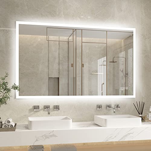 SiRhona 3X badrum spegel förstoringsglas med LED-belysning med uttag för rakhyvel väggspegel med tidsvisning, anti-dimfunktion 100 x 60 cm LED-speglar