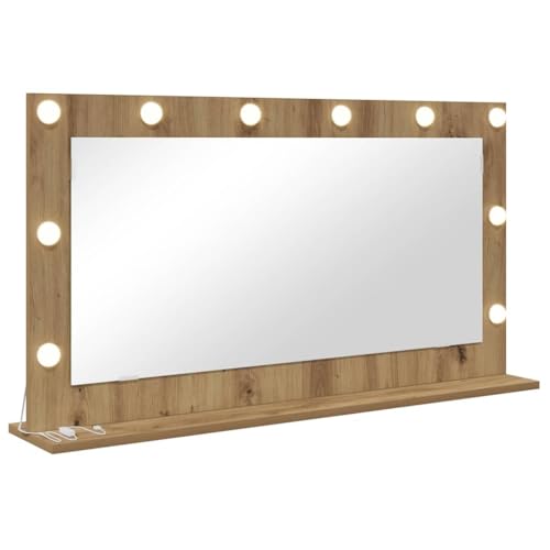 vidaXL Sminkspegel med LED-lampor i Sonoma-ek, väggmonterad, 70 x 50 x 18 cm, rektangulär design för badrum och sovrum. Den har en strömbrytare och inbyggd belysning, enkel att montera. Perfekt för sm
