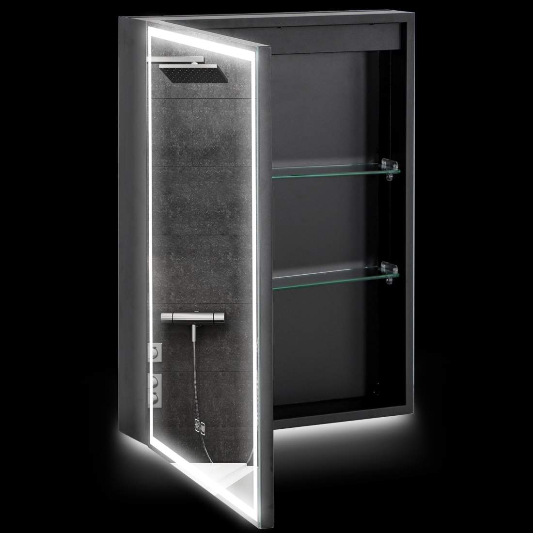 Spegelskåp badrum, badrumsskåp med LED-belysning, anti-dim, väggskåp med 3 ljusfärger, minnesfunktion för badrum, svart, 50 x 12