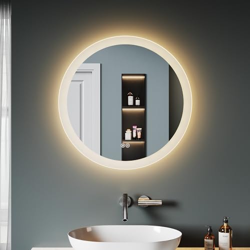 SONNI LED-badrumsspegel med touch-brytare, 60 cm, runda, belysning, för badrum, toalett och hall