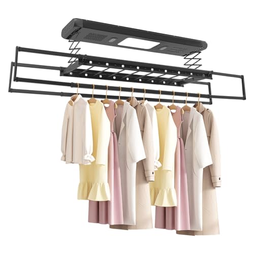 RUETERY Elektriskt torkställ med fjärrkontroll, taktork med LED-belysning, 2 fläktar, blått ljussteriliseringsfunktion, torkställning vägg för husbalkong, badrum