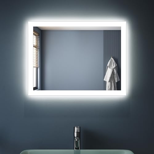SONNI LED-badrumsspegel med belysning, 60 × 50 cm, badrumsspegel med belysning, kall vit, LED-badrumsspegel för badrum, vertikal och horisontell montering, IP44 vattentät